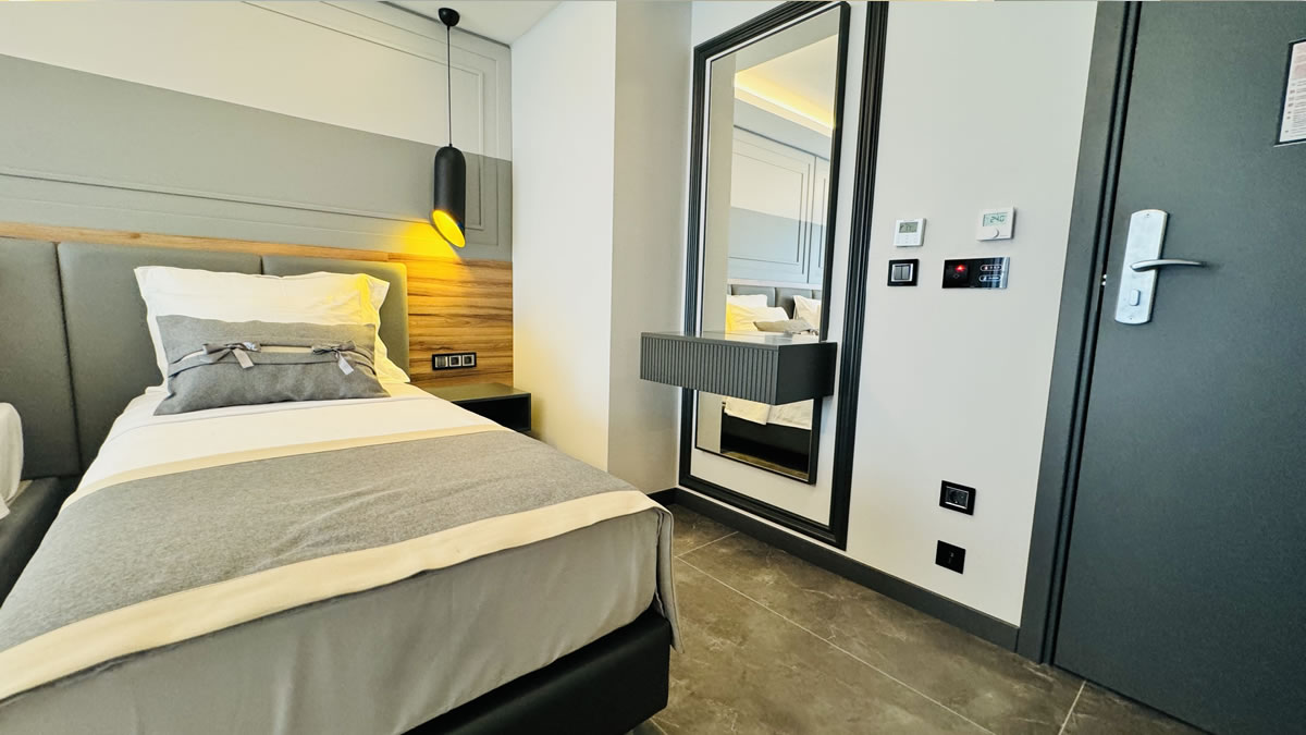 Our hotel has 16 standard rooms. Each of them is designed to offer a comfortable accommodation experience and is suitable for a maximum of 2 people. Each of our standard rooms is 21 m2, which offers you a cosy and spacious environment.
