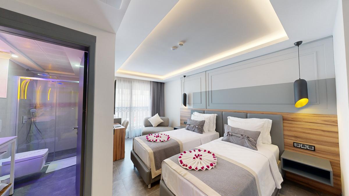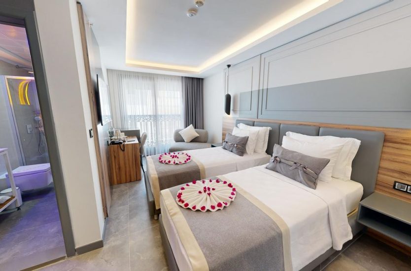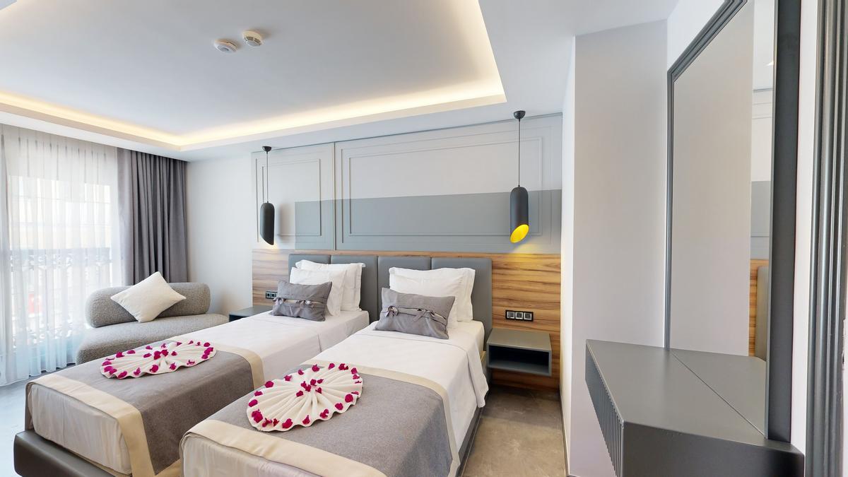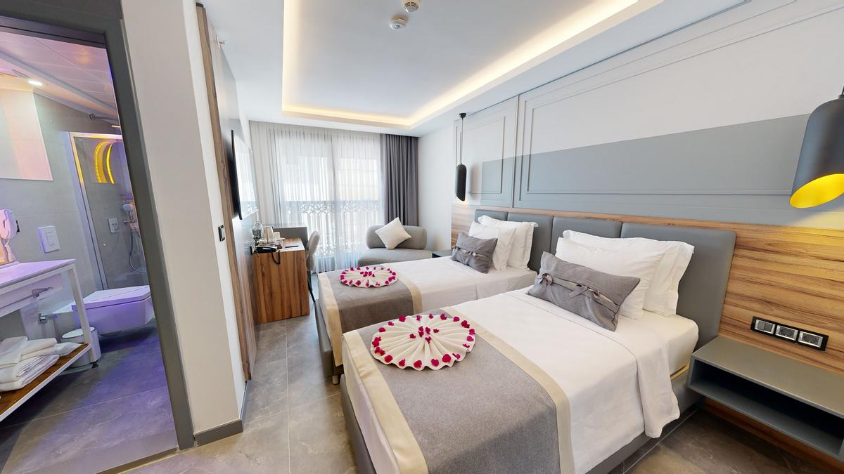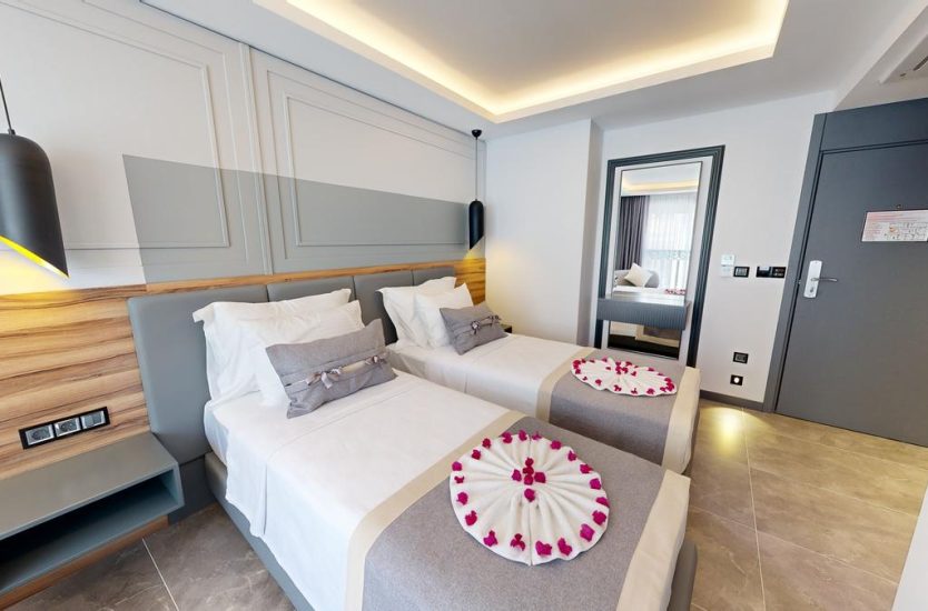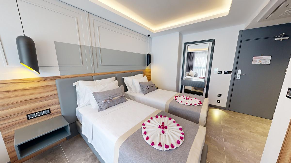 Otelimizde 3 adet iki yataklı oda bulunmaktadır. Her biri konforlu bir konaklama deneyimi sunmak için tasarlanmıştır ve maksimum 2 kişi için uygundur. İki yataklı odalarımızın her biri 23 m2 olup sizlere rahat ve ferah bir ortam sunmaktadır.