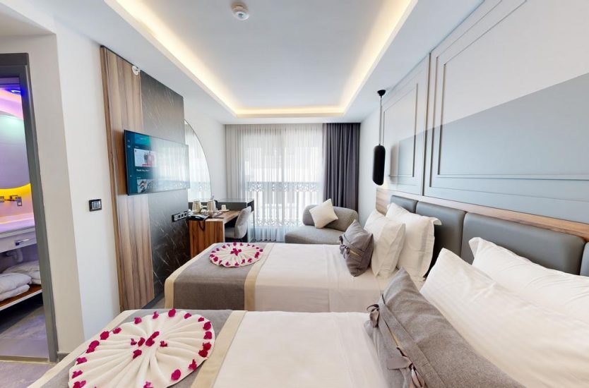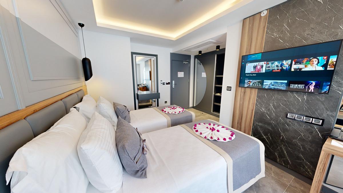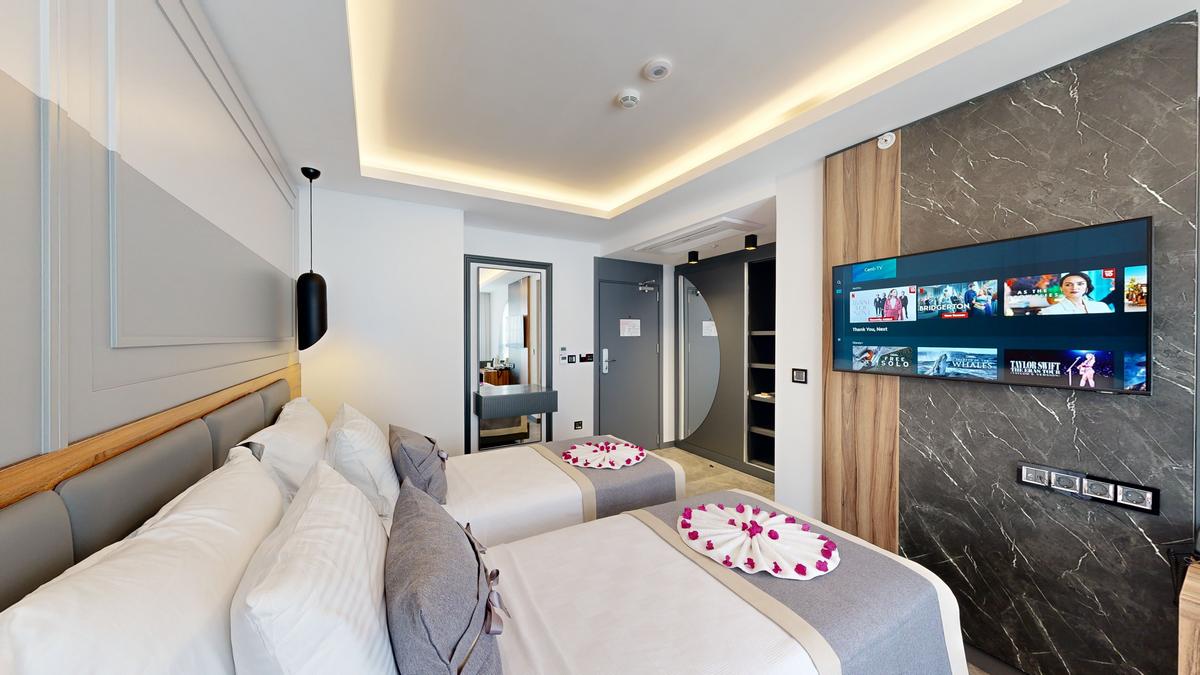 Misafirlerimizin konforu ve memnuniyeti için odalarımızda uyandırma servisi bulunmaktadır, bu sayede güne dilediğiniz saatte başlayabilirsiniz. Akıllı TV ile keyifli vakit geçirebilir, sevdiğiniz içerikleri izleyebilir ve dinlenebilirsiniz. Ayrıca tüm odalarda bulunan ücretsiz Wi-Fi ile işlerinizi halledebilir veya sevdiklerinizle bağlantıda kalabilirsiniz.